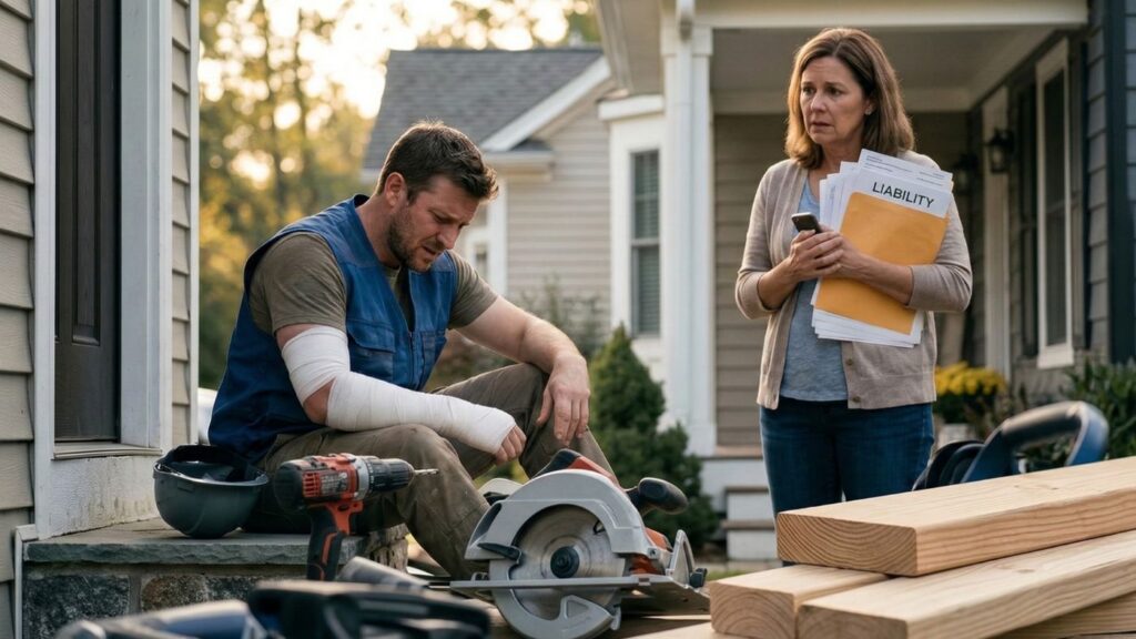 • If a worker is hurt on your property and does not have their own workers’ comp, the law can treat the hiring party—or even the property owner—as the “statutory employer.” That can expose the homeowner to workers’ compensation liability or civil lawsuits for medical costs and lost wages.